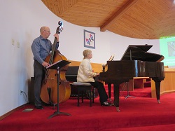 Hymns are all accompanied by a piano or organ. Sometimes the hymn is also accompanied with additional instruments (Bass Fiddle, Tuba, Flute, etc.). All hymns are led by a 2-10 member choir. The congregation is encouraged to join in with all hymns. At times the choir pesents an anthem, a soloist, or special music.